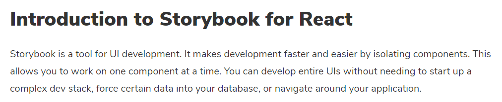 리액트의 공식문서에서도 나와있듯이 컴포넌트를 만들 때 중요하게 고려해야하는 점은 바로 재사용성이다. 컴포넌트를 재사용성이 높게 하기 위해서는 필연적으로 컴포넌트가 하는 일이 명확하고 단순해야한다. 때문에 보통 재사용성이 높은 컴포넌트는 크기가 작다. 이러한 크기가 작은 컴포넌트를 제대로 만들었는지 그리고 기능이 제대로 동작하는지 확인하려면 우리는 이러한 컴포넌트를 일일이 import 하여 확인해줘야 한다. 이는 굉장히 귀찮은 일이 아닐 수 없다. 예를 들어 결제 정보를 입력받는 인풋을 재사용 컴포넌트로 만들어 확인하기 위해서는 매번 결제 정보를 입력 받는 페이지로 이동해야 한다. 코드를 변경하고 다시 저장을 한다면 결과를 확인하기 위해 다시 맨 처음 페이지에서 결제 페이지로 이동해야한다... (귀찮쓰;;)