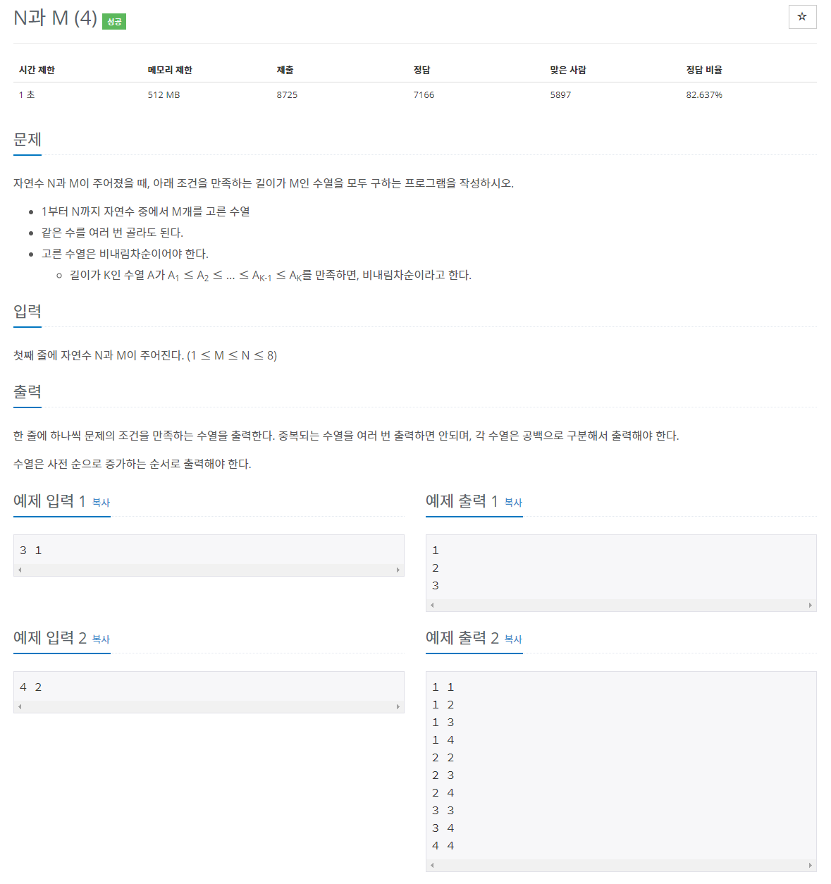 | 백준 15651번_N과 M(3) [python/파이썬] (0) | 2020.07.26 |
