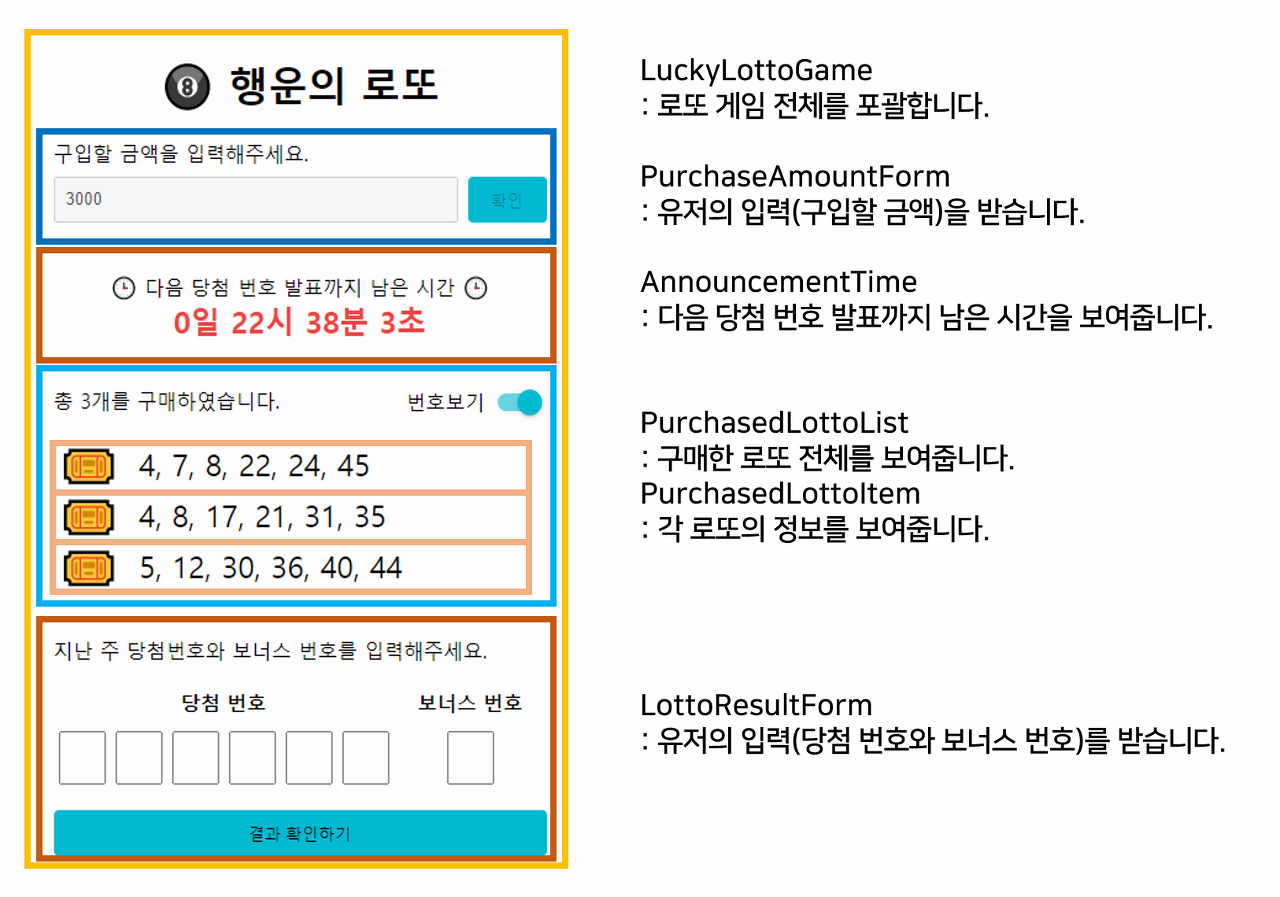 내 나름대로의 컴포넌트에 대한 정의를 내리자면 컴포넌트는 props와 state를 관리하여 화면에 보여지는 UI를 담당하는 기본 단위라고 말할 수 있을 것 같다. 그렇다면 기본 단위는 어떻게 가져가야할까? 바로 재사용성이다. 컴포넌트를 재사용성이 높은 작은 단위로 가져가야 다양한 곳에서 컴포넌트를 재사용 할 수 있다. 하지만 컴포넌트를 얼마나 작게 가져가야하는지 그리고 어떤 컴포넌트가 재사용성이 높은지에 대해서는 경험이 필요한 것 같다. 이번 미션은 기능이 간단하여 재사용성 보다는 컴포넌트를 기능 유형 단위로 분리하여 진행하였다.